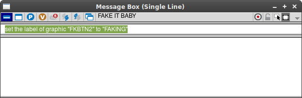 set the label of graphic "FAKEBTN" to "HAPPY"