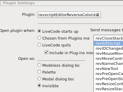 Now, all you need to do is unzip this into your plugins folder, start up Lc, go to the 'development' menu -> plugins -> plugin settings, find the one that says scriptEditorReversoColorizer, set it to start when you start Lc, and your script editor will be full on black (provided it is set to 'white' in the preferences) with very readable text in 3 color variations, chalkboard white, and whatever the 2 colored ones look like (one shown above).