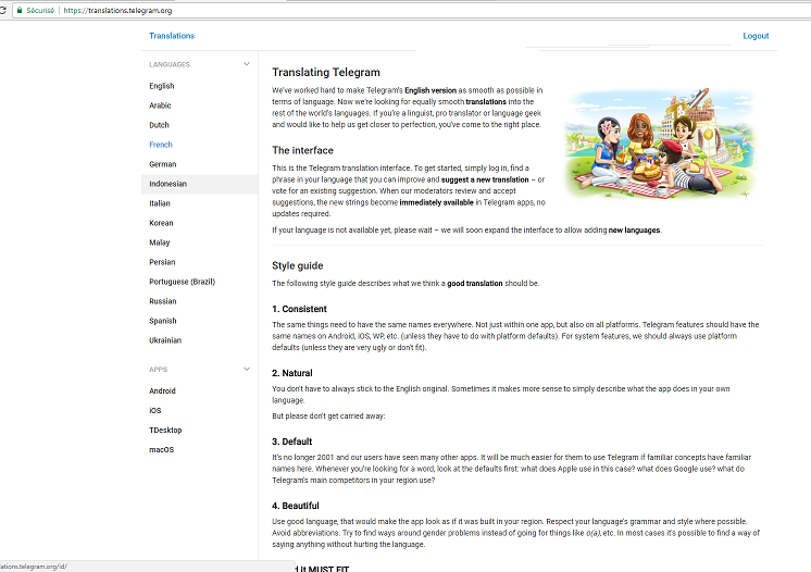 Down below, I ll invite you to give a look (or open your account to get a better view) of a good Translation "tool" that telegram (.org) is using to "succeed" in producing various versions.