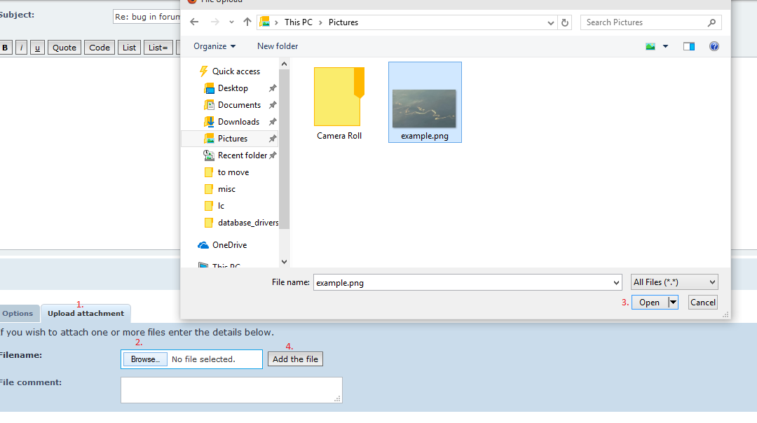 click upload attachment > browse > open > find your screenshot > add the file