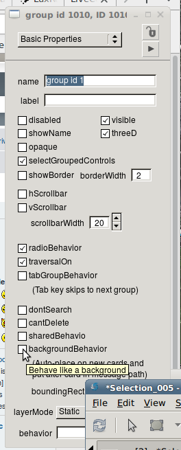 A group with backGroundBehavior set will be seen on all newly created cards. It will not, however, automatically appear on any pre-existing cards. You have two options: