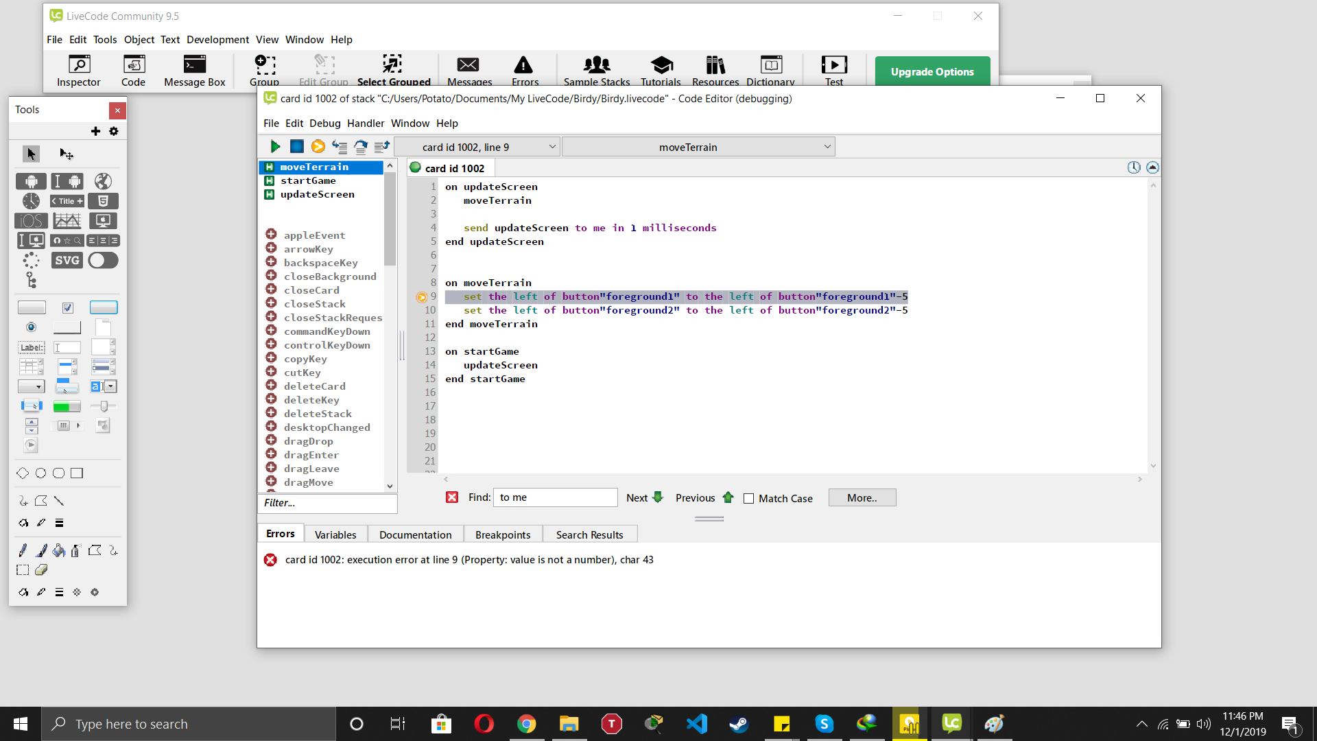 Quit and restart Livecode!