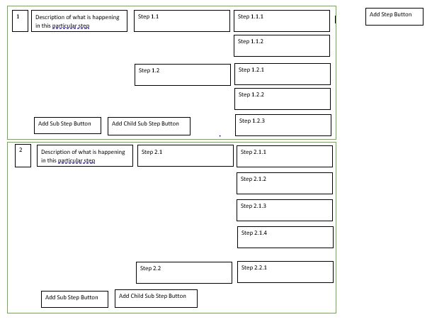 I am trying to design a form that contains information about a job and is going to be stored within a database. Capturing the basic data is fine, where I'm running into issues is I need to be able to add multiple Step/Sub Steps/Sub sub steps (if that's a real term).