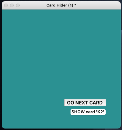 The button on card 'K1' called "GO NEXT CARD" contains this code: