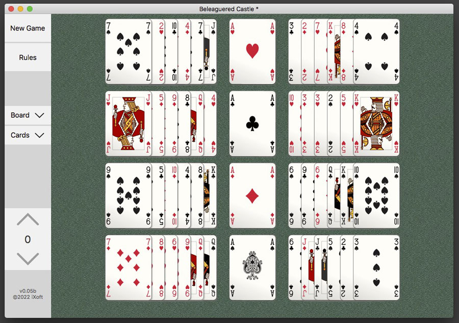 I've never played Beleaguered Castle but you've got me interested. You did spur me to pull out my old solitaire game, based on one called Sir Tommy, and I've been experimenting with turning it into a web app. I also have an old Klondike game I might tinker with.
