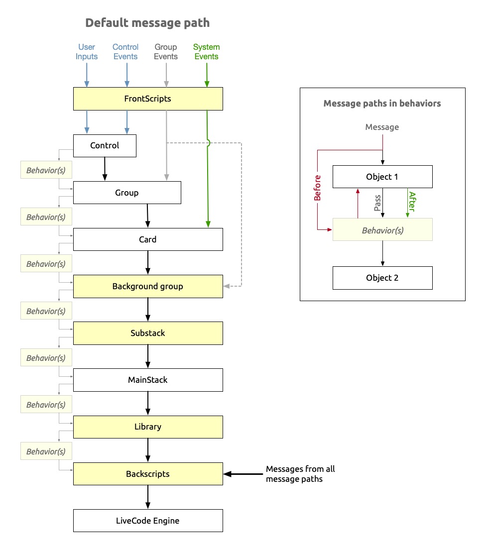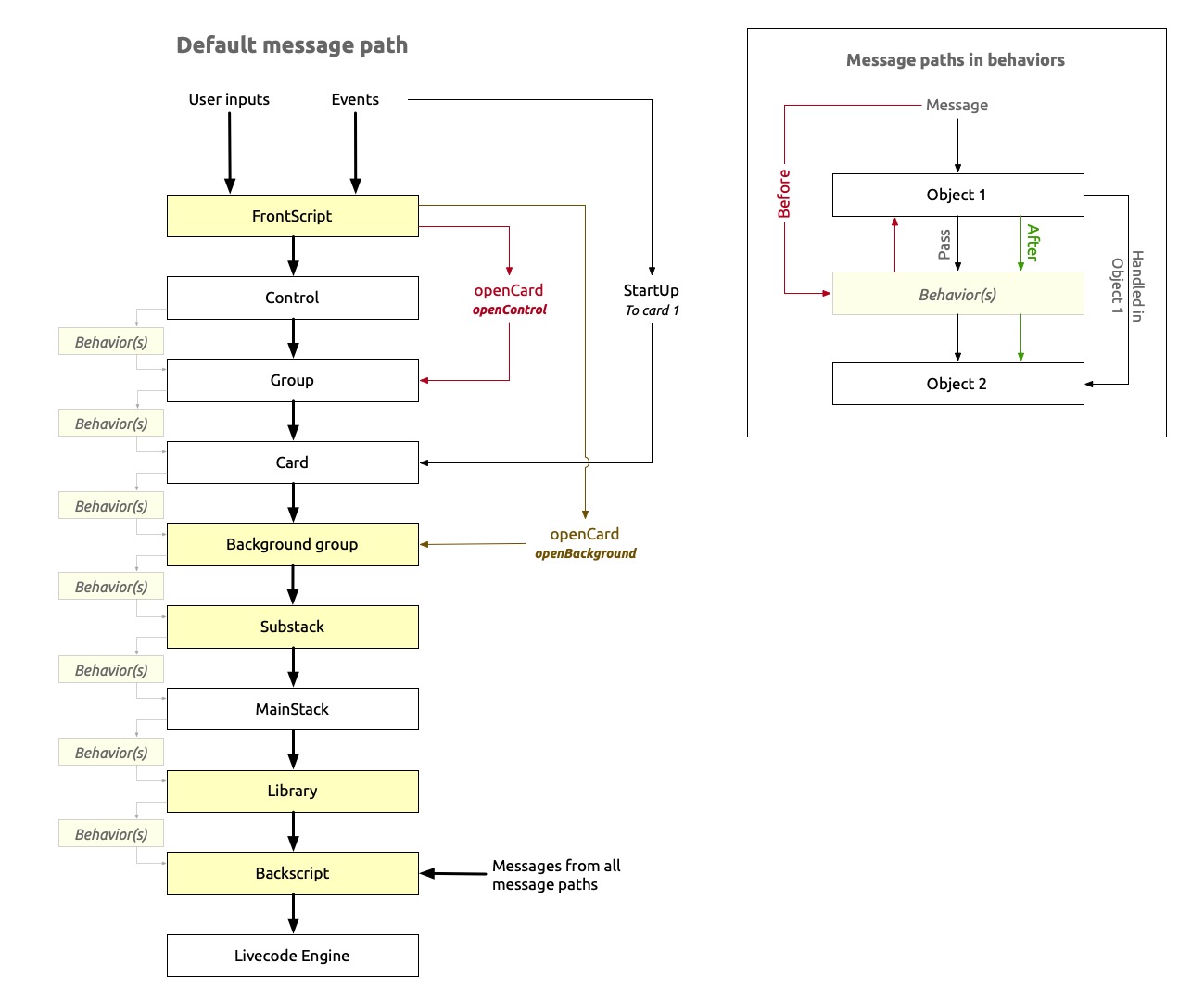 One possibility is the "on" is the default action for the behavior. It could be overridden by the control. The developer may also want something to happen even if the default handler was overridden and would use the "after" to do so.stam wrote: ↑Thu May 09, 2024 9:54 amI don't understand why a behaviour script would have both an 'on' and an 'after' handler in the same script - but assuming there is an important reason of some kind, then yes, the 'after' handler will, but this should be self explanatory (and unnecessary in my view!). And it doesn't really change the object hierarchy...
