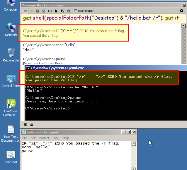 put "cmd /k" && tFile into tFile get shell (tFile) put it