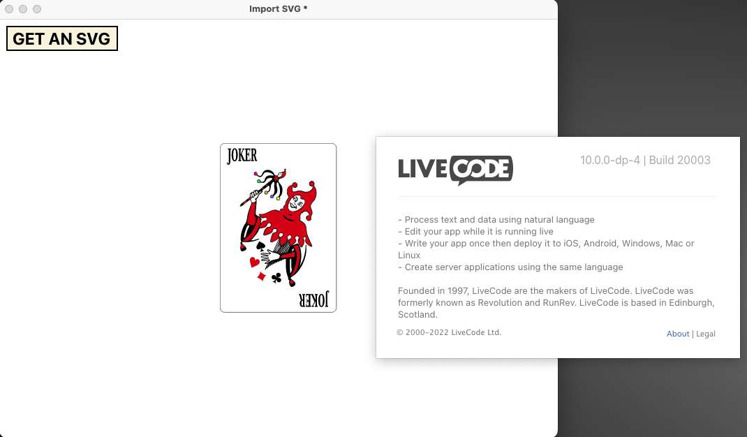 Oh, and as my licence [very kindly supplied by LiveCode for educational purposes] is going 'poof' in 2 weeks time,