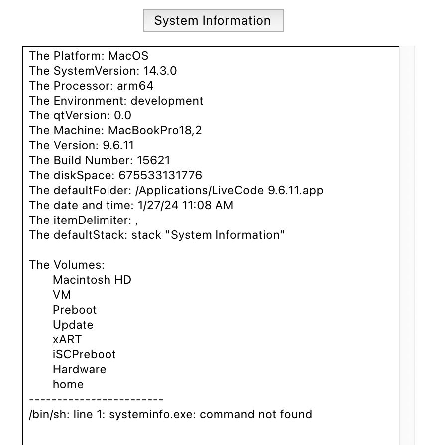 One can paste the code below in a button to get all kinds of system information from a Windows PC.