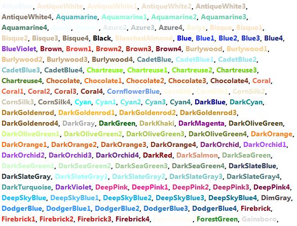 I found the function, put the colornames which listed all of them.