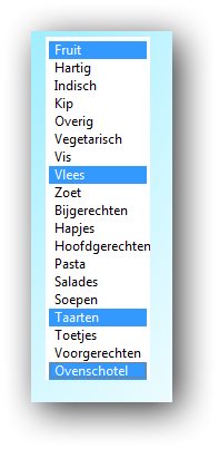 put "fruit,hartig,indisch,kip,overig,vegetarisch,vis,vlees,zoet,bijgerechten,hapjes,hoofdgerechten.,pasta,salades,soepen,taarten,toetjes,voorgerechten,ovenchotel" into tBtnList ----(names of all 19 buttons)