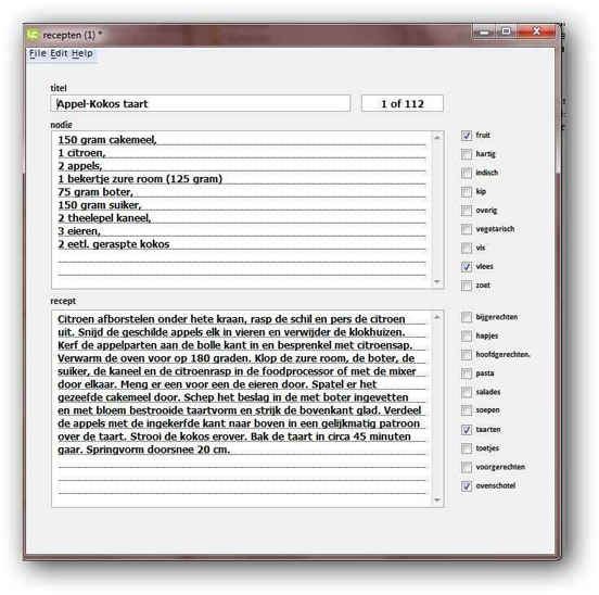 The goal is to find a card amidst 112 cards in the substack "recepten", where the buttons are highlited like in this field "spec":