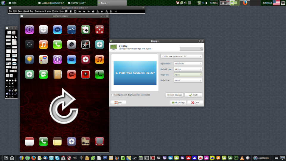 SparkOut wrote:he's trying to maximise the view of a hi-res (portrait) layout on a low-res screen while editing the stack. The final app is not going to be a sideways view on the target device.