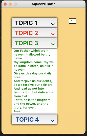 2. Could it perhaps deal with any sort of grouped objects as an accordion segment? e.g. if you wanted to place fields + buttons + other controls into one of the groups to show/hide as desired?