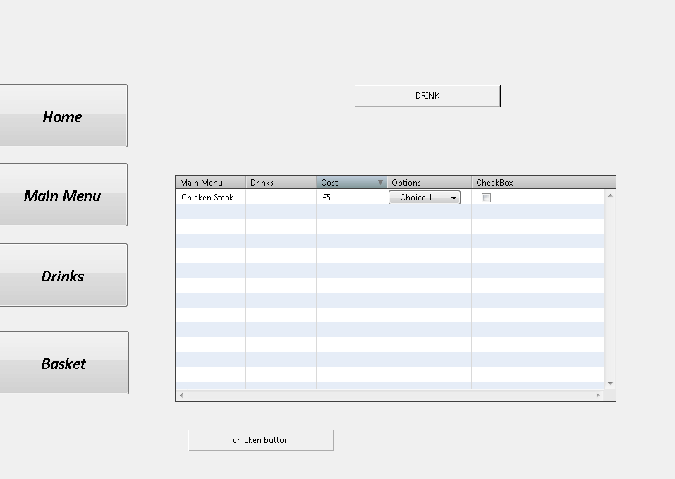 when i click the drink button it deletes everything in the first row for the chicken button