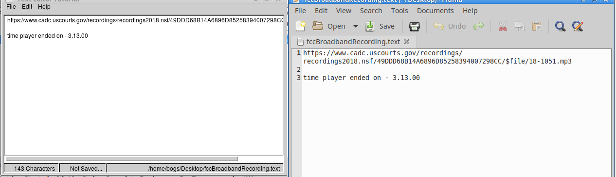 In Pluma, though, it isn't going to just wrap no matter what, if you have a single line of characters with no interruption, it will do as Lc does, and introduce a scrollbar. That is, as I said, behavior I think of as 'normal' or 'expected'.