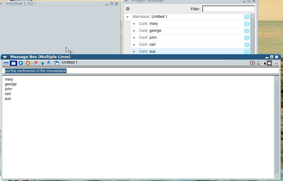 move your mouse cursor over the stack you are working with, but don't click, make sure the message box keeps the focus