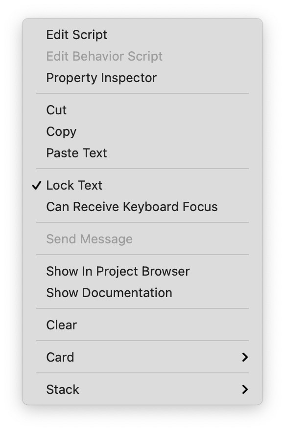 Just to make sure I understood your goal, your looking to create a pop up menu that has dividers and you used (as an example) the right click object menu from within the IDE when you right click on a {card | stack | object}.