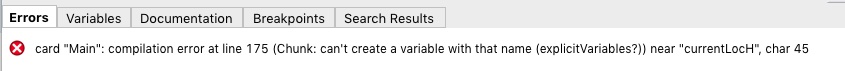 All is not well in the card script. Twenty or thirty handlers look fine, then seemingly randomly there is this: