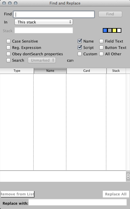 The stack is called "revSearch" and is located within the app bundle on Mac:But I cannot locate the stack . . .