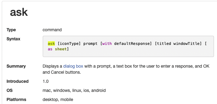 would have made it clear that I made a mistake in my original post, when I indicated, wrongly, that it was with an Answer dialog, when I should have said that it was with an Ask dialog.