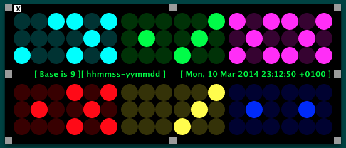 cubeNine displays the time (and date) like gaming dices, also selectable are some number bases that are NOT base10. Funny for developers to read this fast, while some other's can't.