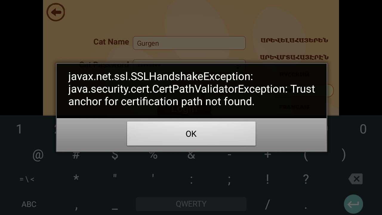I've ceate an standalone application for android and after then I'm trying to Login(sending api call to server) it's giving an error. I do not understand what this means, because the same code works well on the PC.