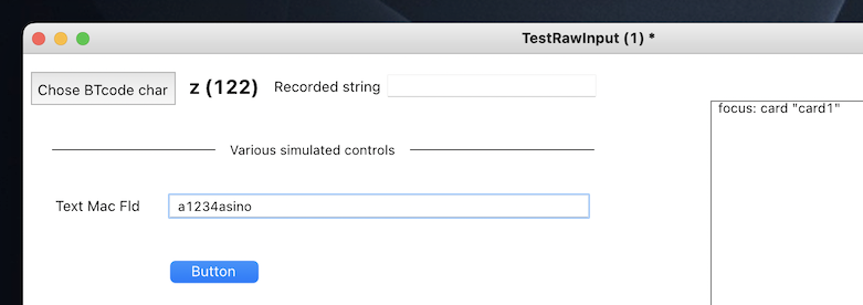 This stack is useful to me to test a string keyboard input packet, of a fixed lenght, defined as such because of the first chosen char, while having in the card other text input fields or focusable controls, where the user may be doing some activity.
