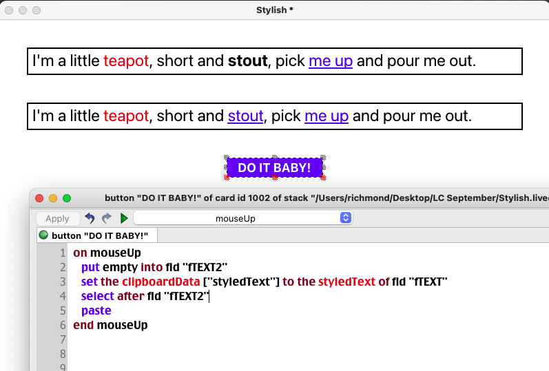 set the styledText of fld "fTEXT2" to ((the styledText of fld "fTEXT2") && the styledText of word DUMA of fld "fTEXT")