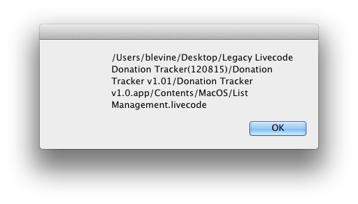 To make this even more confusing, I use some code that changes the delimiter to a "/", removes the last item of that variable, and puts in its place "List Management.livecode". That new string is stored in a global variable named "theListManager" and that is the name of the stack to which I may make changes in data. But there is some confusing code behind consistent behavior. If I use :