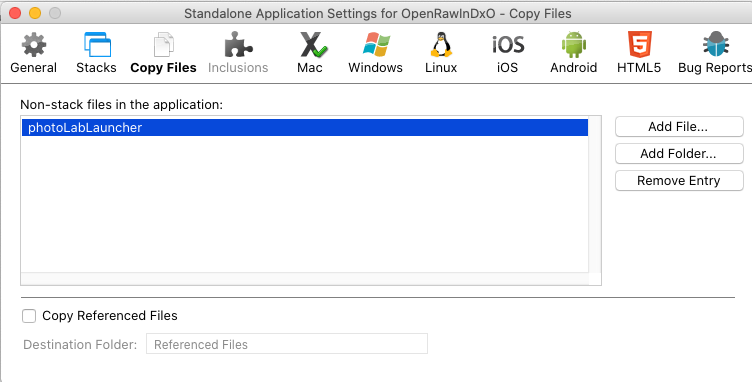 I'm using version 9.6.1 on a Mac and have just run into a new feature. Previously in older versions of Livecode selecting a file in the IDE standalone settings tab copy file/folder would allow a single file to be selected and this was copied to the folder that contained the built engine :