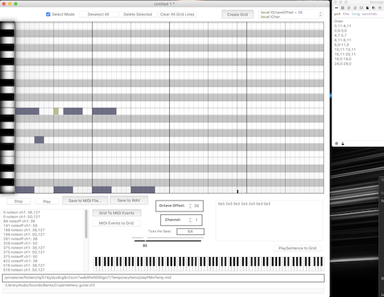 The thing I'm working on now is an LCB version of a "MIDI DataGrid" I made a few years back. It's an X/Y time-line grid, think horizontal "Piano-roll" style grid, like in GarageBand or Cubase. It's actually already working somewhat, saving MIDI (and Wave Files with FluidSynth). I'm trying to iron-out some line-selecting issues, but I plan to make an introduction video soon. The biggest thing slowing me down now (besides Life and a Day Job) is that I'm having too much fun making drum beats!