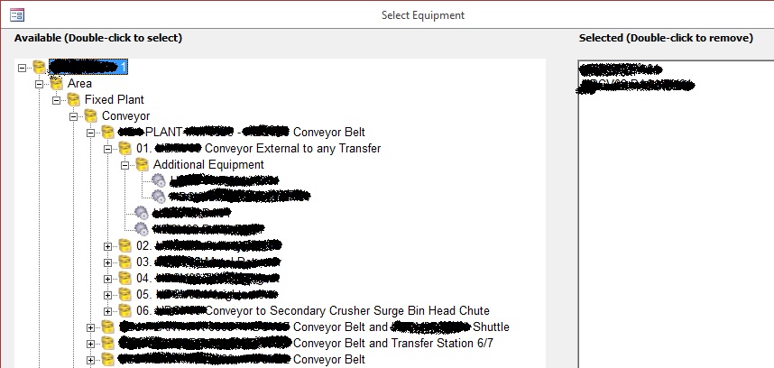 I have an app I created in MS Access and basically the user selects the child entries and they get added to a list. The tree view is pretty much hard coded to require the 6 parent levels then the child entries.