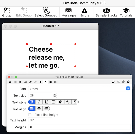 3- In the field inspector click on the "Bold" button. (The "bold" button will toggle, but will not change the textStyle).