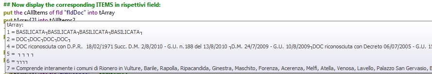 put the cAllItems of fld "fldDoc" into tArray