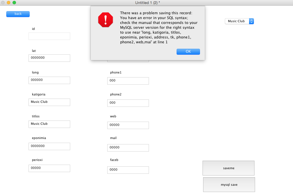 answer error "There was a problem saving this record: " & tRes as sheet