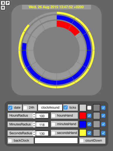 • The clock shows optionally a countDown to next midnight (= backClock).