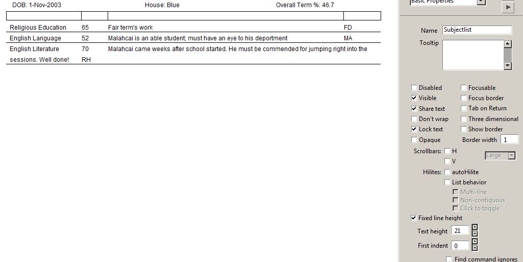 Im trying to set some text to wrap inside a field that is setup like a table with some defined tab widths but i keep getting this