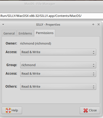 BUT the properties 'thing' in XFCE does not show the 'SILLY' file