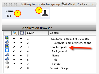 If you have done it correctly, the added controls should appear nested within the Row Template group (as shown in the Tutorial that we have been referring to): Regards,
