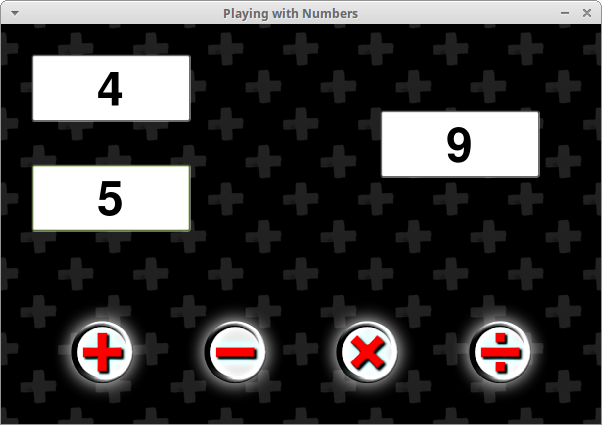 Pupils should write the necessary code in the 3 empty buttons by modifying the code in the '+' button.