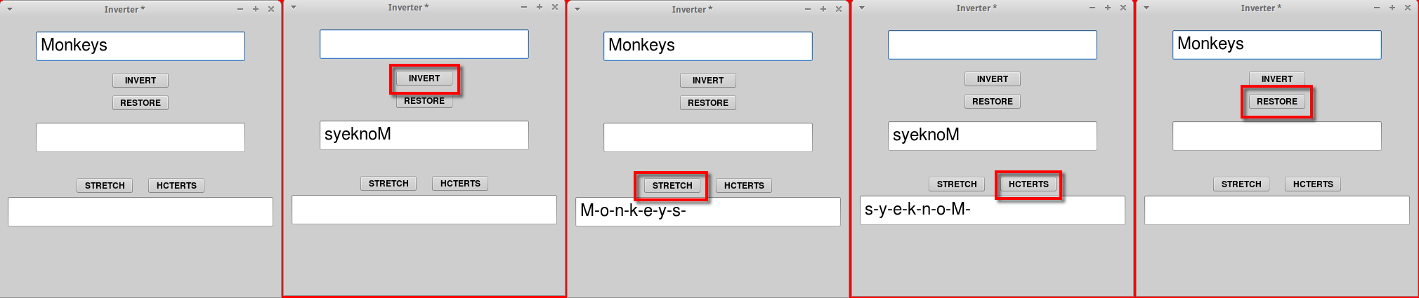 The button outlined in red contains code: pupils/students were expected to script the other buttons to get the results illustrated
