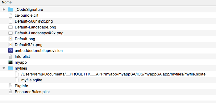 "/Users/remu/Documents/Project/Apps/test_app/myfiles/myfile.sqlite", a 1 KB file, almost empty.