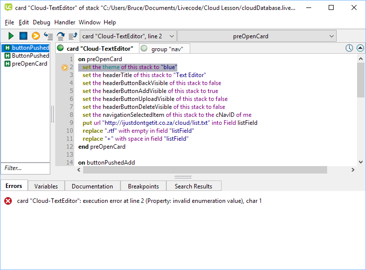 card "Cloud-TextEditor": execution error at line 2 (Property: invalid enumeration value), char 1.