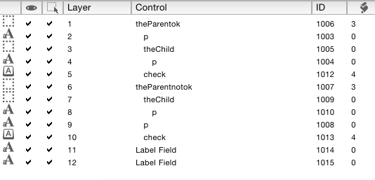 - if the fld "p" of "theParent" has a layer number lower than the grp "theChild", it happens what expected: