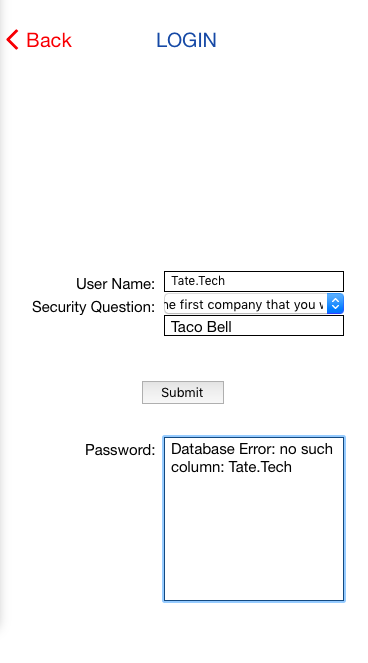 Hello, I'm having trouble displaying the password of an account. I have just made the insert statement to put new account information into the database. Now once you have an account and you forget the password, I'm trying to search the database for the password of a row where the username, security question, and security question answer.