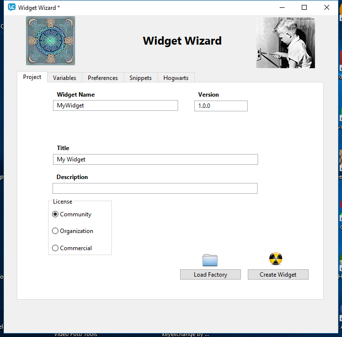 Widget Wizard is a utility to help in the creation of LiveCode extensions. You can define some simple parameters, then click the Create Widget button and Widget Wizard will create a new folder containing a single .lcb file. You can build and test the widget in the IDE's Extension Builder, and by default it will just log messages to the log window. You can then edit the .lcb file with the code for your widget.