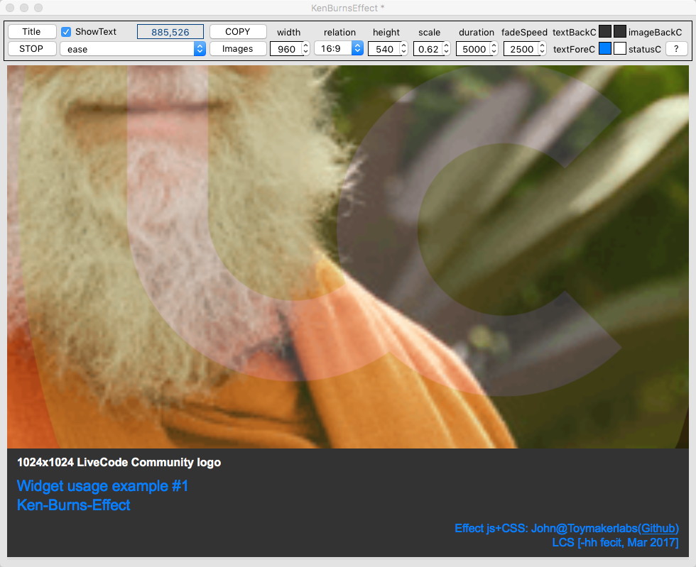 Then you are done and your effect plays. To STOP simply set the htmlText of widget "KenBurns" to empty.