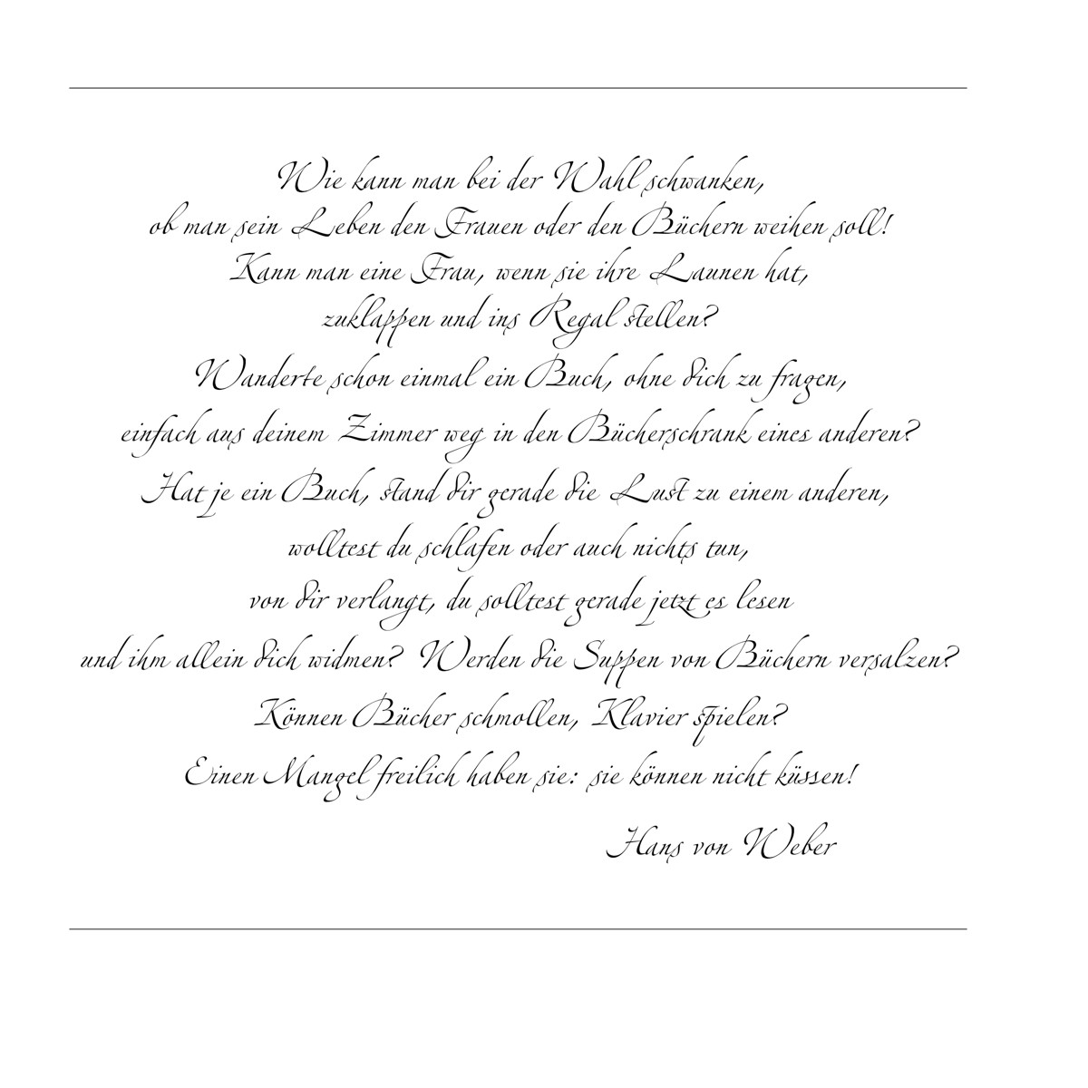 ob man sein Leben den Frauen oder den Büchern weihen soll!
