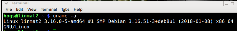 terminal command wrote: bogs@linmat2 ~ $ uname --version